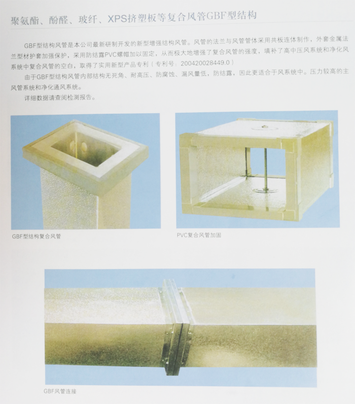復合風管是將保溫板材表面粘貼高純度軋花鋁箔,按照工程需要制成集風道與保溫材料為一體的新型風管。保溫材料選用三種材料,一種是厚度為25mm的離心玻纖板,一種是厚度為20mm的硬質聚氨酯板;一種是厚度為20mm的硬質酚醛板。 本公司通過對國內外生產廠家的調研,取長補短,自行研制了復合風管機械化生產線,并專為復合風管設計了兩種連接機構,加強其密閉性能。是通風管道系統最為理想的更新換代產品。 復合風管主要特點: 1、強度大:抗壓抗變形,結構穩定,長期使用不變形、不扭曲、不分解,具有優良的壓縮強度和拉伸強度。 2、導熱系數小:經建筑科學研究所測定,其導熱系數為0.22-0.03w/m.k,優于其他常用保溫材料。 3、防火性能好:達到并超過國家GB8624-1997標準,玻纖板為難燃A級,聚氨酯板為難燃B級,酚醛為難燃B級。 4、制造設施簡單:生產風管只需幾件常規的小型工具和工作平臺,無需剪刀車、折邊機等專用工具。 5、重量輕、安裝便捷:保溫板材平均容量為50-80kg/m3,風管連接采用GBF型連接,插條式連接及T型加固型連接,施工安裝快捷方便,一般安裝速度為50m3/日/人。 6、使用壽命長:由于風管內外層為高純度軋花鋁箔,表面與空氣接觸,將形成具有穩定的AL2O3保護層,保溫板材為高分子材料,使用壽命是鍍鋅風管的4-6倍,一般可以達到30年以上。 7、氣密性能極佳:經同濟大學供熱通風與空氣調節實驗室測試表明,當管道內靜壓為2000Pa時,其漏風量均低于標準值。當管道在內外壓差4200Pa時,目測其管道均未有變形和裂損。