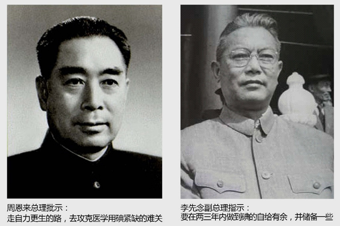上世紀(jì) 60 年代 ,是一個(gè)嚴(yán)重缺碘的年代。碘是國(guó)家的重要戰(zhàn)略物資,對(duì)于國(guó)計(jì)民生有著舉足輕重的作用。新中國(guó)成立后,我國(guó)所需要的碘基本依賴進(jìn)口。隨著“冷戰(zhàn)”的加劇,西方國(guó)家對(duì)我國(guó)實(shí)行經(jīng)濟(jì)封鎖,并采取“禁運(yùn)”政策中斷了我國(guó)碘的來(lái)源。為了打破“封鎖”,從根本上改變我國(guó)缺碘的嚴(yán)峻形勢(shì),周恩來(lái)總理作出重要批示:“走自力更生的道路,去攻克醫(yī)學(xué)用碘緊缺的難關(guān)。”李先念副總理指示:“要在兩三年內(nèi)做到碘的自給有余,并儲(chǔ)備一些。”